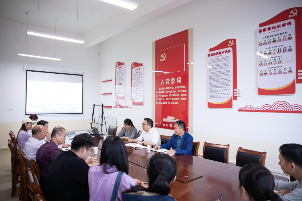 甘勇书记听取了马克思主义学院院长邱启照和党总支书记张文源就教学和党建工作所作的工作汇报,对马克思主义学院建设给予了充分肯定。甘书记指出,马克思主义学院是学习研究宣传马克思主义的主阵地,思想政治理论课是马克思主义学院坚持用习近平新时代中国特色社会主义思想铸魂育人的主渠道,要严格对照建设标准,发挥大思政课的政治功能、扩宽教学渠道和思想引领功能,切实推动思想政治理论课取得新成效。