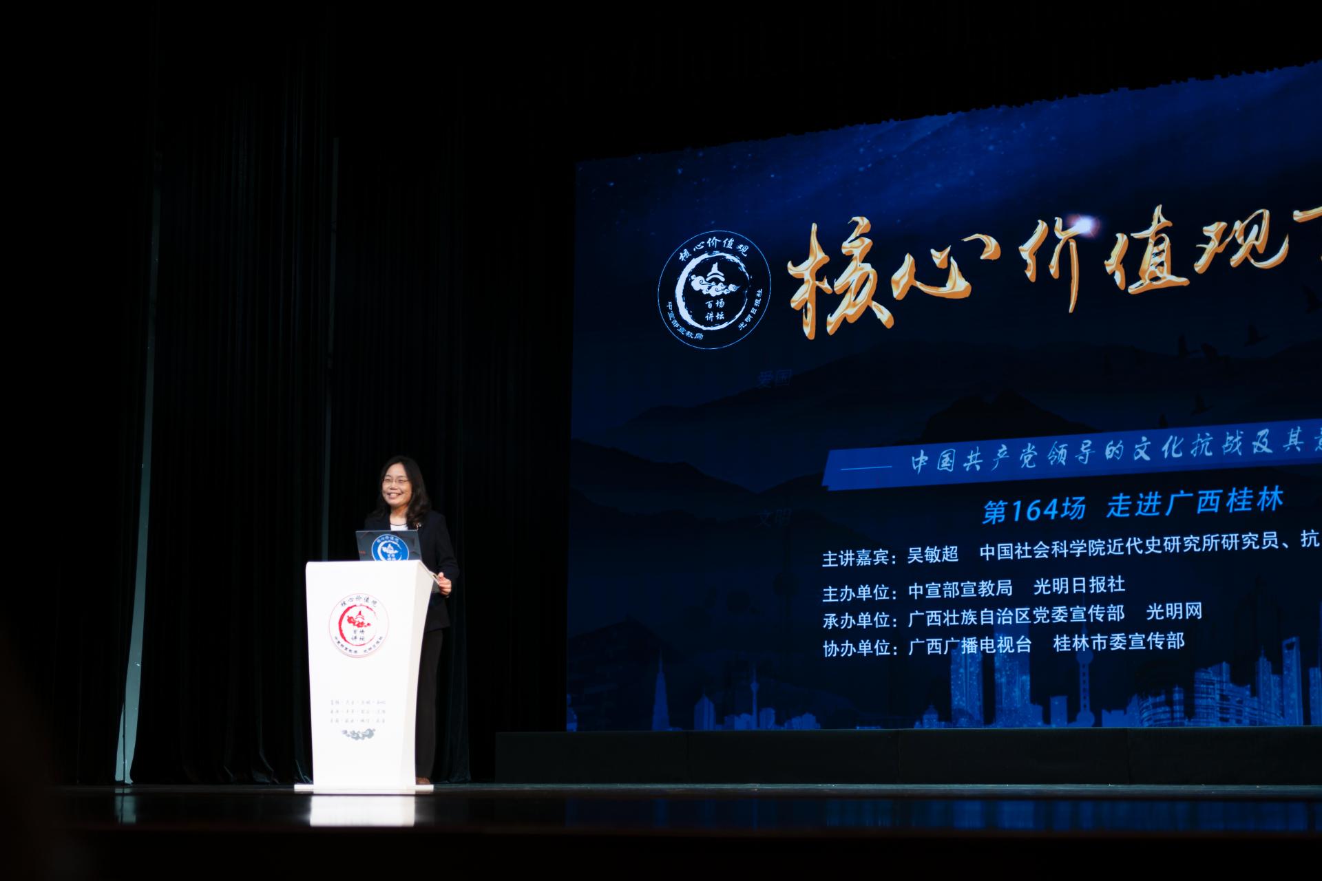 10月23日上午,学校党委积极响应桂林市委宣传部号召,组织120余名师生党员代表前往国家级文物保护单位、抗战文化名城的重要地标广西省立艺术馆,参与由中宣部宣教局、光明日报社联合主办的核心价值观百场讲坛第164场活动。这场高规格的国家级讲坛落地桂林,为beat365官网师生提供了一次宝贵的高水平思想政治学习机会。
