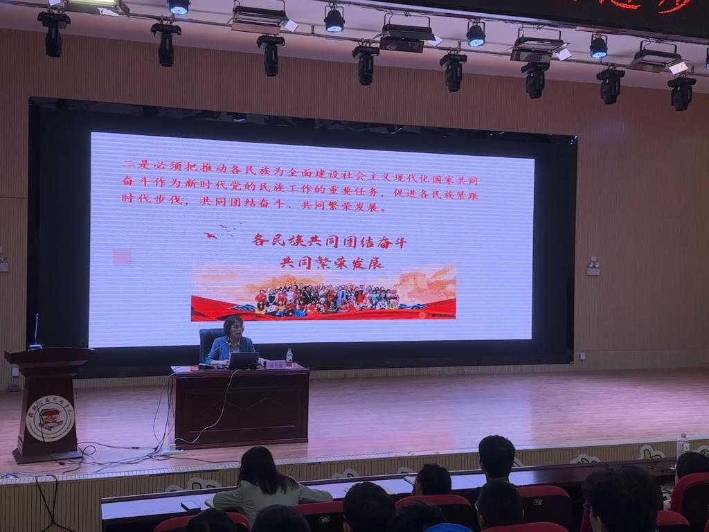 张教授以“进一步深化新时代学校民族团结进步教育”为主题,用通俗易懂的语言系统讲解党的民族理论及民族政策,围绕民族基本知识、中国共产党的民族理论与民族政策、习近平总书记关于民族团结和民族工作的重要讲话精神展开学习,通过图文并茂的形式,列举了大量有关民族团结的事例,解读了当前党和国家的民族政策、民族问题和民族关系,分析了当前民族宗教形势,并对如何做好高校民族团结进步工作提出了建议。