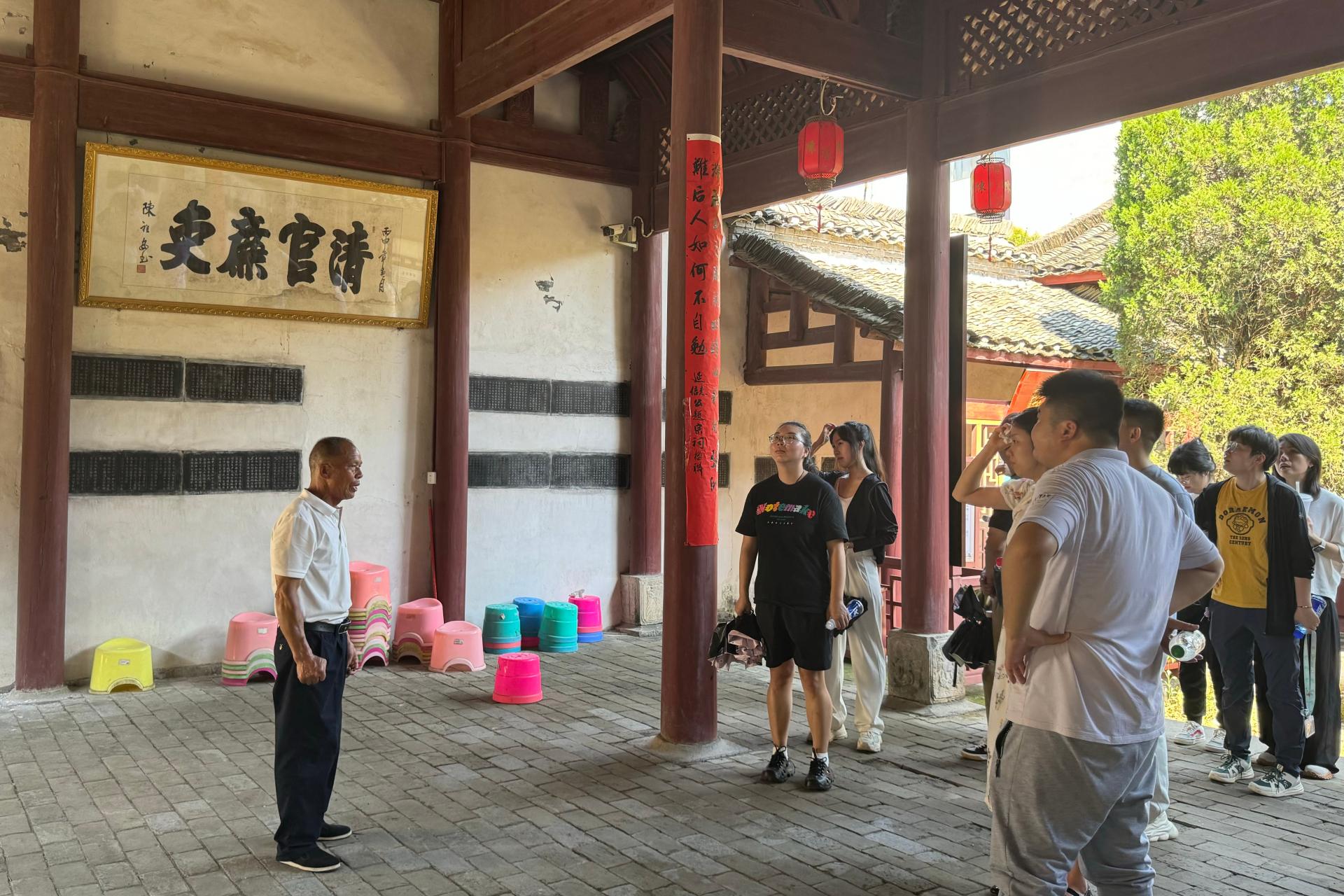 在陈氏宗祠内,教师党员们在讲解员的引导下,深入了解了陈宏谋“清、廉、勤、实、慎、教”的六字从政理念。通过观摩《五种遗规》摘录、陈氏家训等珍贵文献,党员们深刻领悟到这位清代名臣“凡所行事,只求不愧于心”的处世箴言和“立身先立品”的家风传承。教师党员特别对陈宏谋家族“三元及第”的科举成就与“一生清正廉洁”的家风教育进行重点学习,从中汲取师德养成的历史智慧。