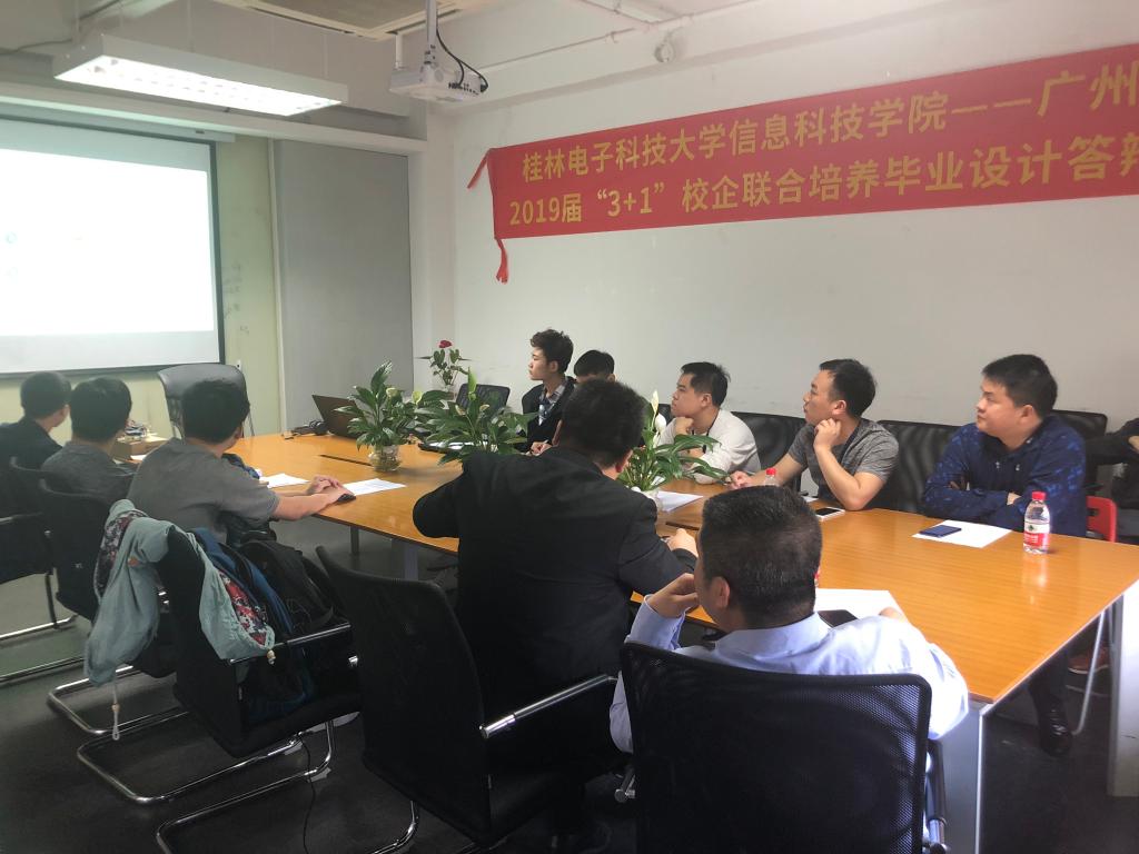 3月30日,电子工程系与广州粤嵌通信科技股份有限公司(以下简称粤嵌)在粤嵌众创空间四楼会议室进行电子工程系2019届“3+1”校企联合培养粤嵌实习学生毕业设计答辩。系副主任韩桂明、粤嵌工程师何芳明、何东明、韦永贵担任本次答辩评审,电子工程系在粤嵌实习学生34人参加本次答辩,粤嵌工程师岳汶华主持会议。