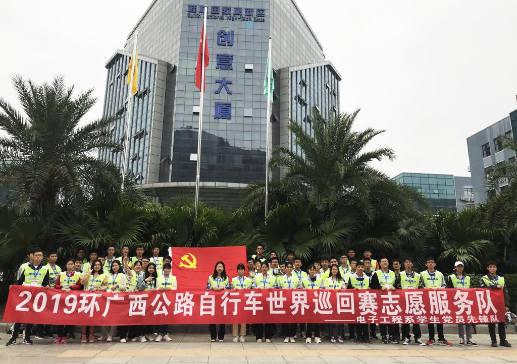10月22日,2019年环广西公路自行车世界巡回赛桂林站开赛,电子工程系学生党员先锋队秉承“立足校园,服务社会”的宗旨,积极践行“不忘初心、牢记使命”主题学习内容,组织60余名学生骨干参与此次赛事的安保志愿服务工作。