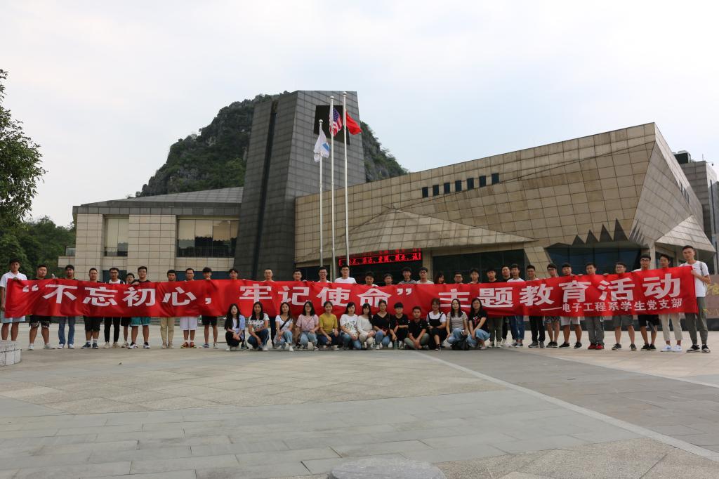 9月20日,电子工程系学生党支部赴临桂开展“不忘初心、 牢记使命”主题教育活动。我系第一学生党支部书记覃瑶、第二学生党支部书记周郁及全体学生党员参加本次活动。