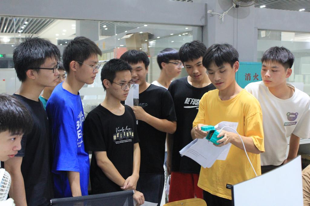 在电子创新基地负责人的引导下,同学们先后参观了创新创业教育成果展示区、创新创业实训室,聆听了学长学姐们的经验分享。在现场演示环节中,机甲战队的学长们邀请新生进行现场操控体验。在他们的耐心指导下,同学们都开始不再拘束,全身心投入到科技创新带来的乐趣中。