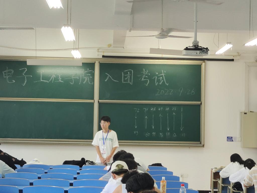 为进一步保证新发展团员质量,提升团员队伍先进性,9月26日中午,电子工程学院于32204、32307、32309教室举办入团选拔考试,分为笔试和面试两个环节,意向申请入团的2021级、2022级学生共226人参加。