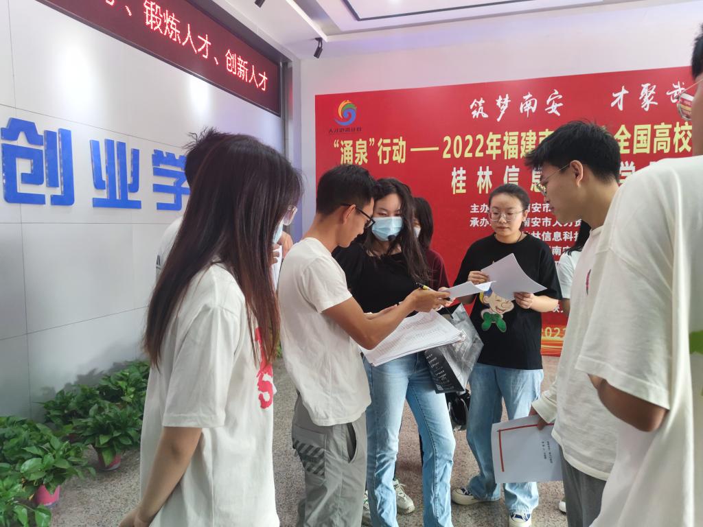 此次推介会有来自福建南安市共12家企业参会,共提供40余个岗位。其中,和我院专业对口的泉州恒泰晟智能科技有限公司、泉州三安半导体科技有限公司、阳光中科(福建)能源股份有限公司、南安新工机械有限公司等企业,极大的丰富了毕业生们的求职选择。招聘会现场,人头攒动,气氛火爆,我院同学争相投递简历,主动与各单位交流,了解各单位概况、发展前景及工资待遇情况,寻找适合自己的工作。