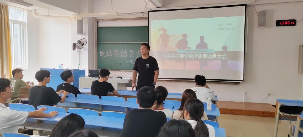 为充分调动运动员的积极性,同时保证运动会期间各项工作有序进行。10月26日,电子工程学院分团委学生会于32307教室召开运动员动员大会,本次大会由我院分团委书记范恒祯主持,各年级运动员共同参与。