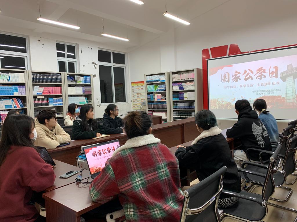 为深切缅怀南京大屠杀遇难者同胞和革命先烈。12月13日晚,电子工程学院在41502活动室以线下与线上直播相结合的方式通过学院微信公众号组织开展《南京!南京!》爱国主义教育观影活动,我院各年级共计300名同学参与本次活动。