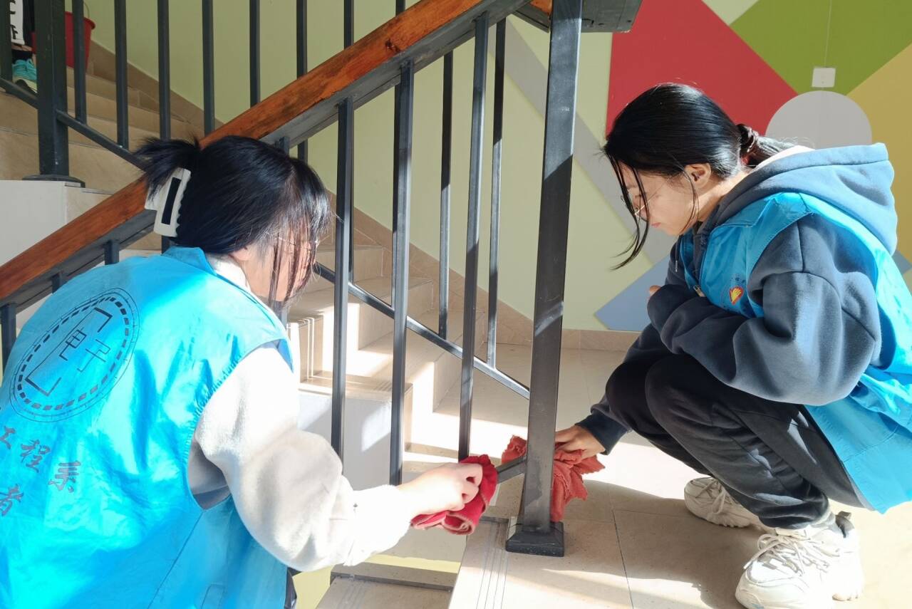 志愿者在清洁楼梯