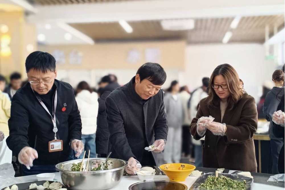冬至作为传统节日,承载着中华民族深厚的文化底蕴,此次活动不仅是对传统文化的传承与弘扬,更是促进师生情谊、增强校园凝聚力的良好契机。包饺子过程中,解庆林校长、陈玲萍副校长和王东云院长与师生们围坐一团,一边包着形态各异的饺子,一边交流着各地冬至习俗,欢声笑语不断,现场其乐融融。不多时,形态各异却饱含深情的饺子摆满了案板。