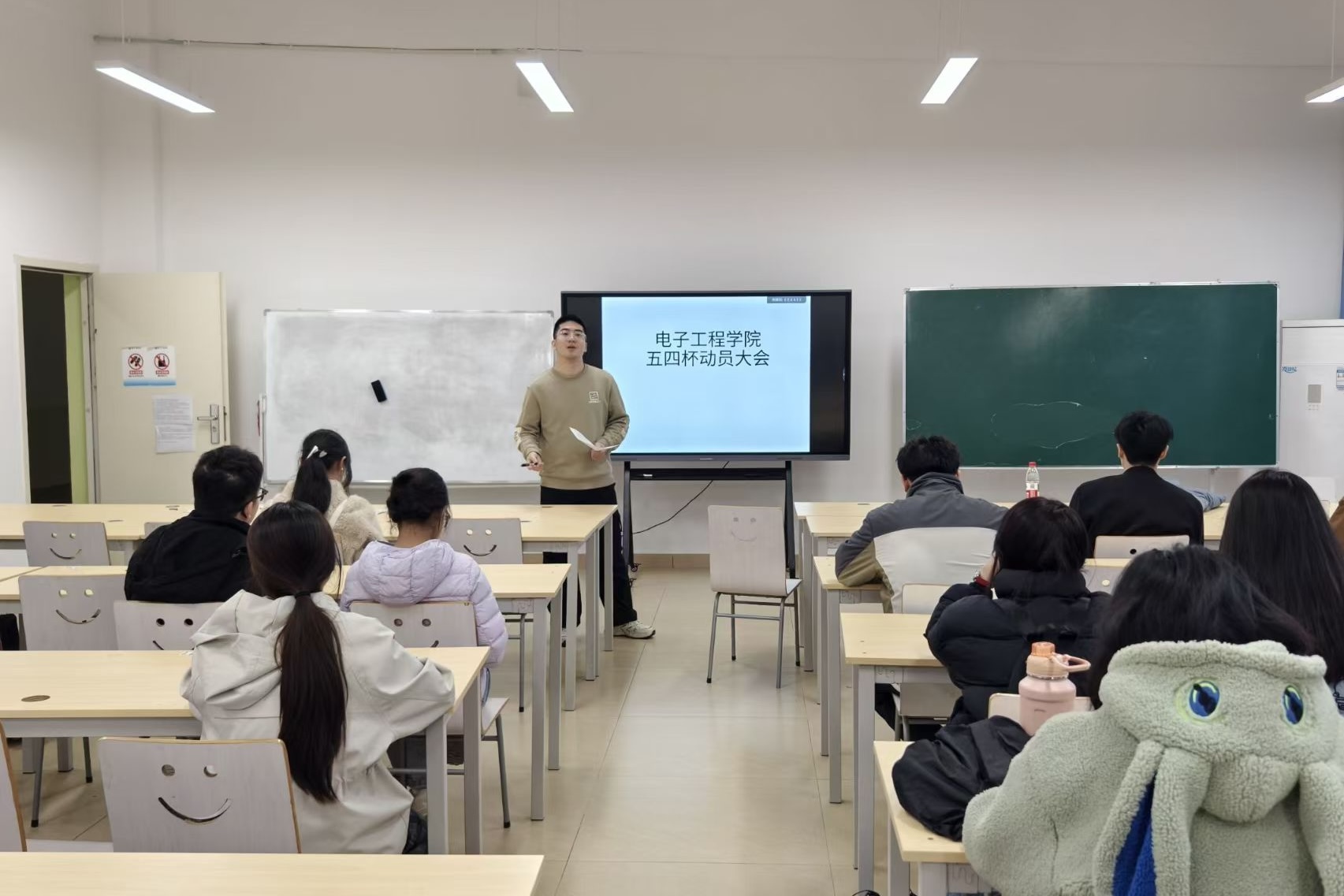 为保障2026年“五四杯”三走体育文化月各项赛事顺利开展,强化参赛学生的规则意识与安全意识,3月24日中午,电子工程学院于敦明楼A504召开“五四杯”动员大会。会议由学院团委副书记张泽鑫老师主讲,各代表队队员参加。