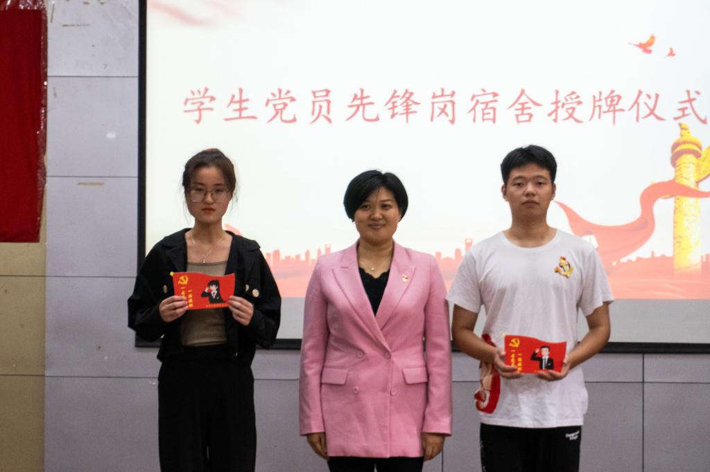 会上,池老师就先锋岗成立一年来概况作出总结,对学生党员取得的成绩表示肯定。同时,要求党员们树立“有岗有责有为”的观念,也希望每一位学生党员都能立大志、做实事。在表彰环节中,应邀老师分别对宿舍、学习、帮扶、科技创新四个岗位表现突出的八名学生党员颁发证书。随后在新一届启动仪式中庄老师进行发言,她指出学生党员过去一年在各岗位上尽心尽力帮助周围同学,充分发挥先锋模范作用,真正做到“一个党员一面旗”。她指出学生党员们应以本次先锋岗启动仪式为契机,为我院党建工作建设添砖加瓦。最后王南萍老师总结发言,她提到我院自成立先锋岗以来在带动师生积极投身到各项活动中成效显著,希望我们的学生党员可以牢记党员身份与责任,爱党忠于党,充分发挥党员的带领作用,不忘初心,砥砺前行。
