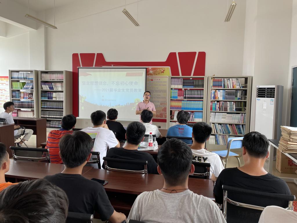为进一步做好我系2021届毕业生党员教育管理工作,提升党员素质,引导和激励广大毕业生党员坚定理想信念,以饱满的热情走向新的学习和工作岗位,切实发挥党员的模范带头作用。6月23日中午,在41502党员活动室,第三学生党支部书记欧盛福以“坚定理想信念,不忘初心使命”为主题,给我系所有在校毕业生党员开展了离校前最后一次党课教育。