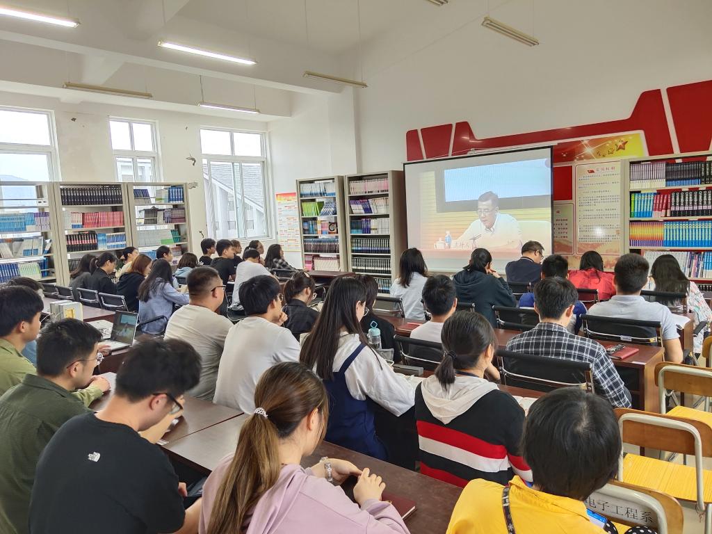 为深入开展党史学习教育,教育引领广大学生党员积极认真学习党史,5月17日下午,电子工程系党总支组织我系各支部师生党员代表在41502共同观看“十场名家云直播”之“历史为什么选择中国共产党”党课。