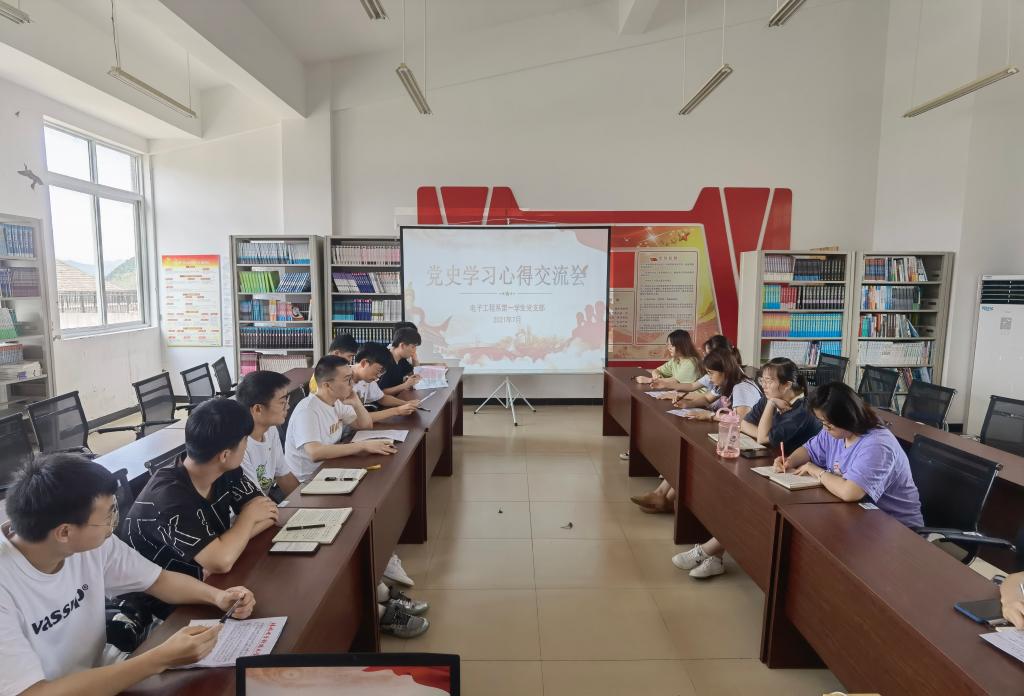 7月5日-7日,电子工程学院各党支部分别在41502党员活动室开展党史学习教育心得交流会,会议由各党支部书记主持,各党支部在校党员参加会议。