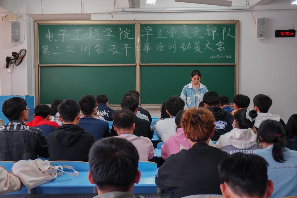 为更好地促进各部门的协调发展,10月25日中午,电子工程学院学生党员先锋队在32307教室召开干事培训动员大会,先锋队全体队员参会。