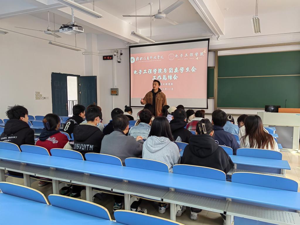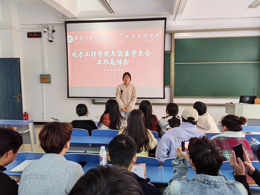 12月13日,电子工程学院分团委学生会召开2022年工作总结会,学院分团委书记范恒祯、分团委副书记朱济亨与学生会主席团成员依次上台对本年度工作进行回顾与分析,两委委员共同参与本次会议。