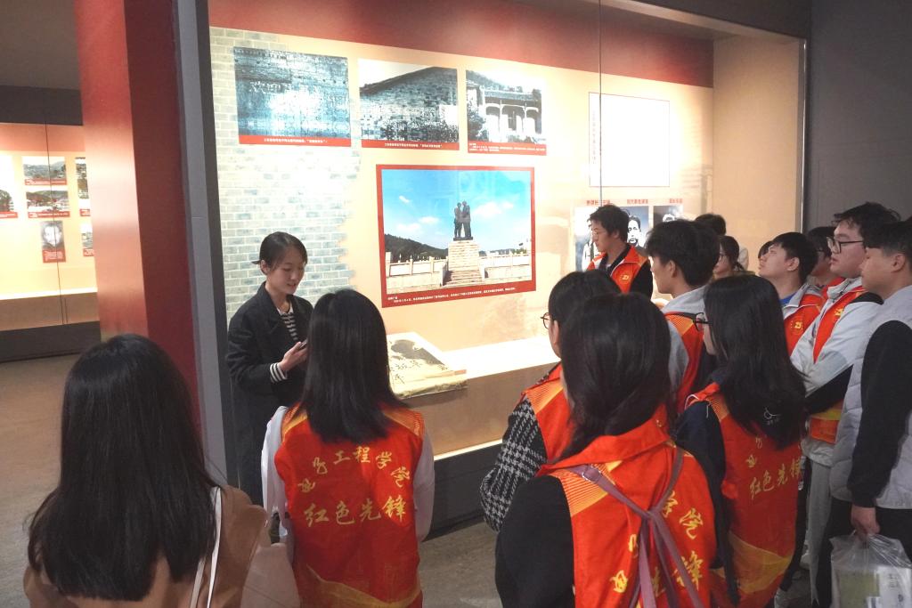 参观当日,恰逢桂林博物馆与井冈山革命博物馆联合举办《革命雄师会井冈》专题展。党支部全体成员参观了《革命雄师会井冈》专题展,该展全面系统展现了毛泽东等老一辈无产阶级革命家在湘赣边界领导军民创建中国历史上第一个农村革命根据地,开辟了“农村包围城市、武装夺取政权”的井冈山革道路的伟大实践历程。活动中,党支部书记陈思宇根据井冈山革命根据地的创立、发展和转移的时间脉络进行现场解说。陈思宇强调,井冈山会师是中国革命的重要里程碑,同学们应铭记历史,大力弘扬井冈山精神,继承革命先烈遗志,践行好新时代的革命精神。