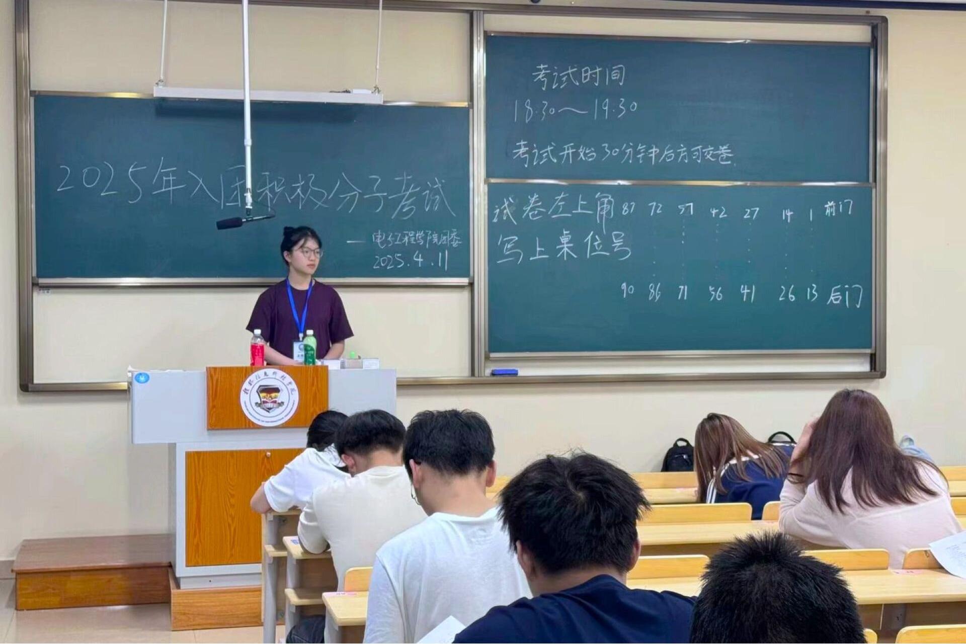 为深入贯彻落实党的二十大精神,进一步加强共青团组织建设,严格团员发展标准。4月11日晚,电子工程学院团委在明志楼C408-C411举办2025年上半年入团考试。本次考试共有254名入团积极分子参与。