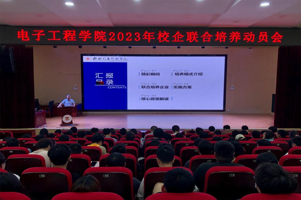 5月4日上午,电子工程学院在51206报告厅召开2023年校企联合培养动员会。本次会议由学院院长韩桂明主持,学院党总支书记庄璧瑛、2020级辅导员出席会议,电子工程学院820余位学生参加此次会议。