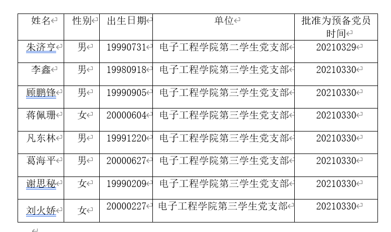 以上预备党员转正名单公示的期限为5个工作日,自公示之日起,个人和单位发现公示对象存在不符合转正条件问题的,可向所在单位党支部或上级党组织反映举报,举报人应提供反映被举报人问题的具体事实线索,署真实姓名和单位,否则不予受理。电子工程学院党总支负责为举报人保密。举报电话:0773-2290572,电子工程学院组织员:陈义红。