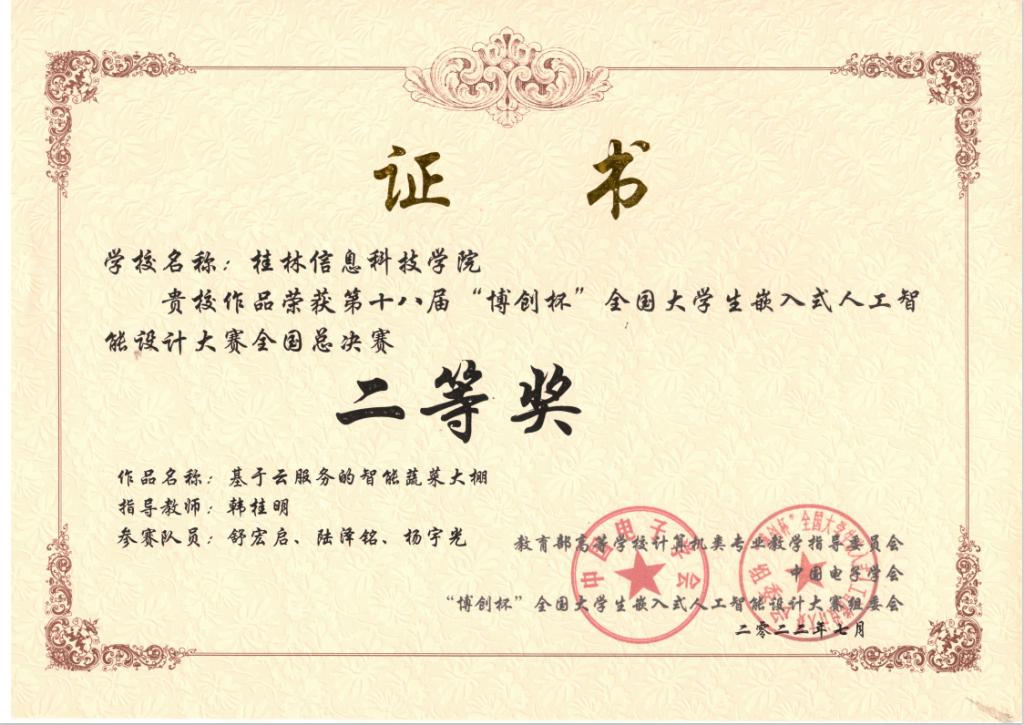 近日,第十八届“博创杯”全国大学生嵌入式人工智能设计大赛(全国总决赛)在北京成功举办,全国近200支队伍入围总决赛。通过两天的激烈角逐,最终获得5项国奖,获奖队伍均来自学校电子工程学院,其中全国特等奖1项,全国二等奖2项,全国三等奖2项,成绩在同类民办院校中名列第一。