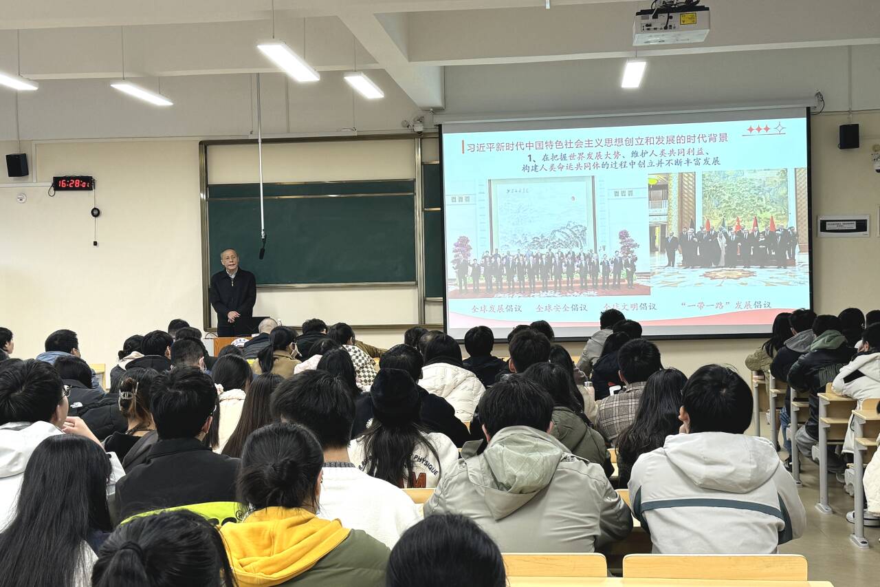 校长梁丁丁围绕四个方面内容深入解读“开辟马克思主义中国化时代化新境界”的深刻内涵。一是习近平新时代中国特色社会主义思想创立和发展立足于世界发展大势、维护人类共同利益、构建人类命运共同体的时代背景;立足于中华民族从站起来、富起来到强起来的伟大飞跃的时代背景;立足于对科学社会主义理论与实践的深邃思考、深刻总结,对坚持和发展中国特色社会主义的不断探索、砥砺前行的时代背景;立足于在党不断实现自我净化、自我完善、自我革新、自我提高,以伟大自我革命引领伟大社会革命的时代背景。二是习近平新时代中国特色社会主义思想创立和发展具有时代性、实践性,中国特色两个鲜明特征。三是深刻阐述了习近平新时代中国特色社会主义思想的主要内容和科学体系。习近平新时代中国特色社会主义思想的主要内容和科学体系理论与实践贯通,战略与策略并存,贯通于党和人民事业的各个环节、各个方面、各个领域,形成了一个内在统一的有机整体。四是习近平新时代中国特色社会主义思想具有科学的世界观和方法论。校长梁丁丁强调,习近平新时代中国特色社会主义思想始终坚持人民至上的根本价值导向,自信自立的内在的精神特质,守正创新的鲜明理论品格,问题导向的实践要求,系统观念的基本的思想和工作方法以及胸怀天下的境界格局。