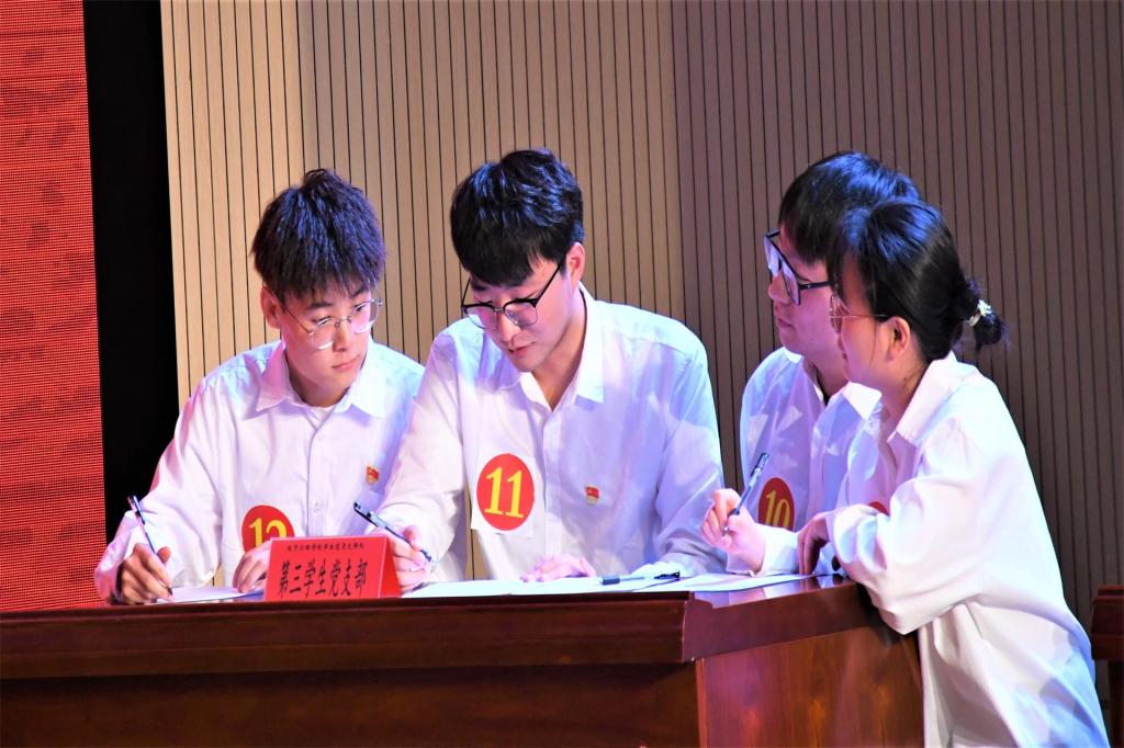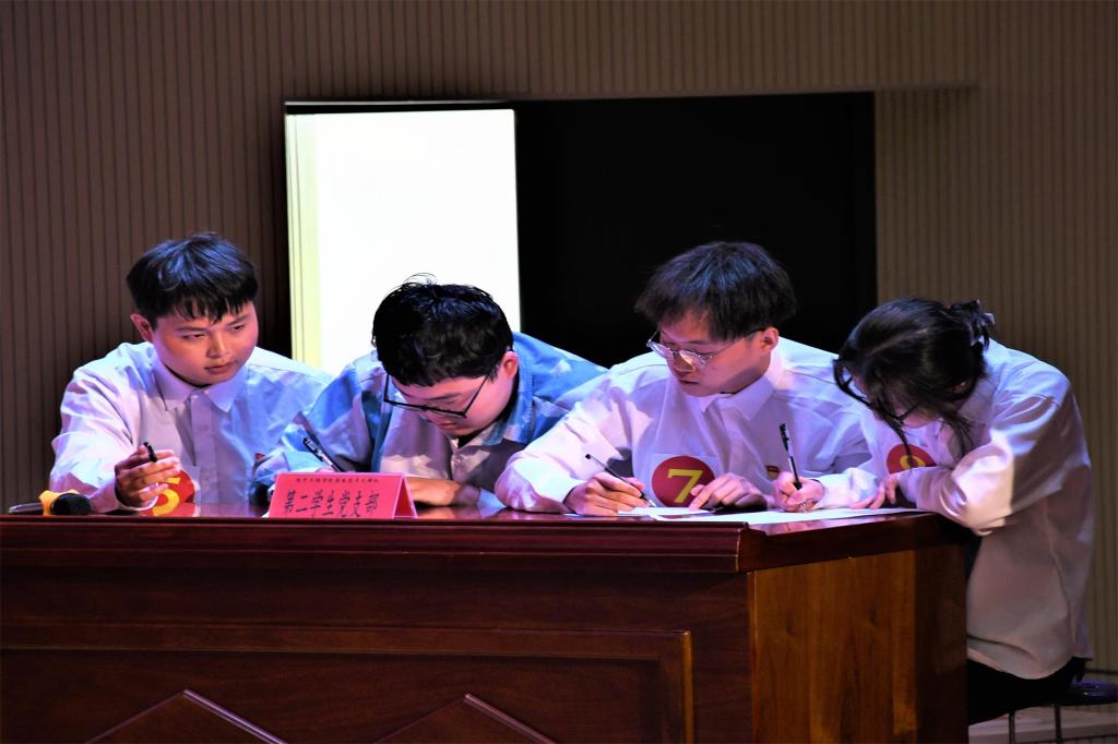 此次竞赛分为3个环节,循环答题、必答题、选答题。三个学生党支部分别派出4名代表进行现场竞答。赛场上,每支队伍积极应答、冷静思考、斗志昂扬,充分展现团队凝聚力。经过激烈角逐,最终第二学生党支部获得最佳组织奖;第一、第三学生党支部获得优秀组织奖;曾桐宇同志获得优秀个人荣誉称号。