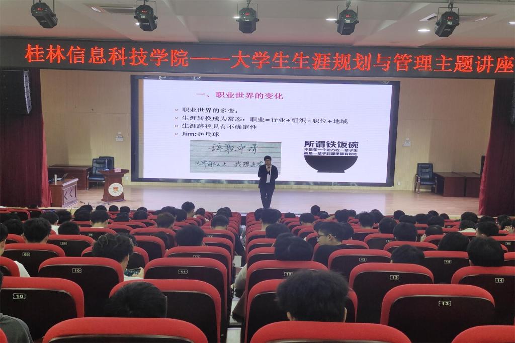 为帮助学生合理规划大学生活,引导学生树立正确的人生观,培养求实创新的精神。5月25日下午,学校在51206报告厅举办“3·25心理活动季”大学生生涯规划与管理专题讲座,本次讲座由学校心理中心主办、电子工程学院心理工作站承办,邀请广西师范大学陈宛玉博士到校为同学们进行生涯规划指导,全体辅导员与各年级心理委员、朋辈学生干部及现代产业学院的学生有序到场参与讲座。