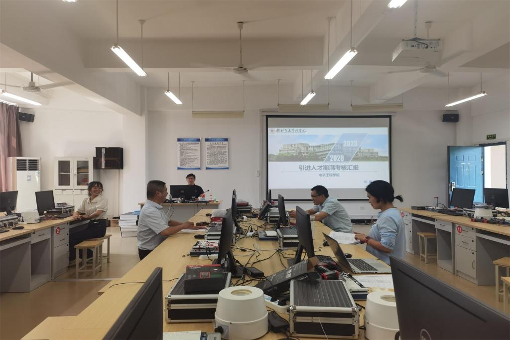 6月14日,电子工程学院在41404实验室召开专任教师聘期任务汇报会,开展2020年度引进专任教师三年聘期期满考核工作,会议由学院院长韩桂明主持,各教研室主任参加会议。