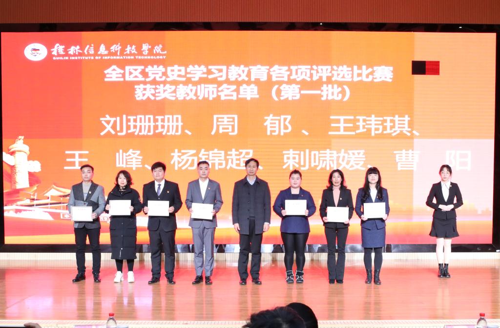 会议首先通过视频回顾了2021年学校党史学习教育开展的情况和取得的成效,与会领导为学校2021年获得全区党史学习教育各类评选活动三等奖以上的教师进行颁奖。