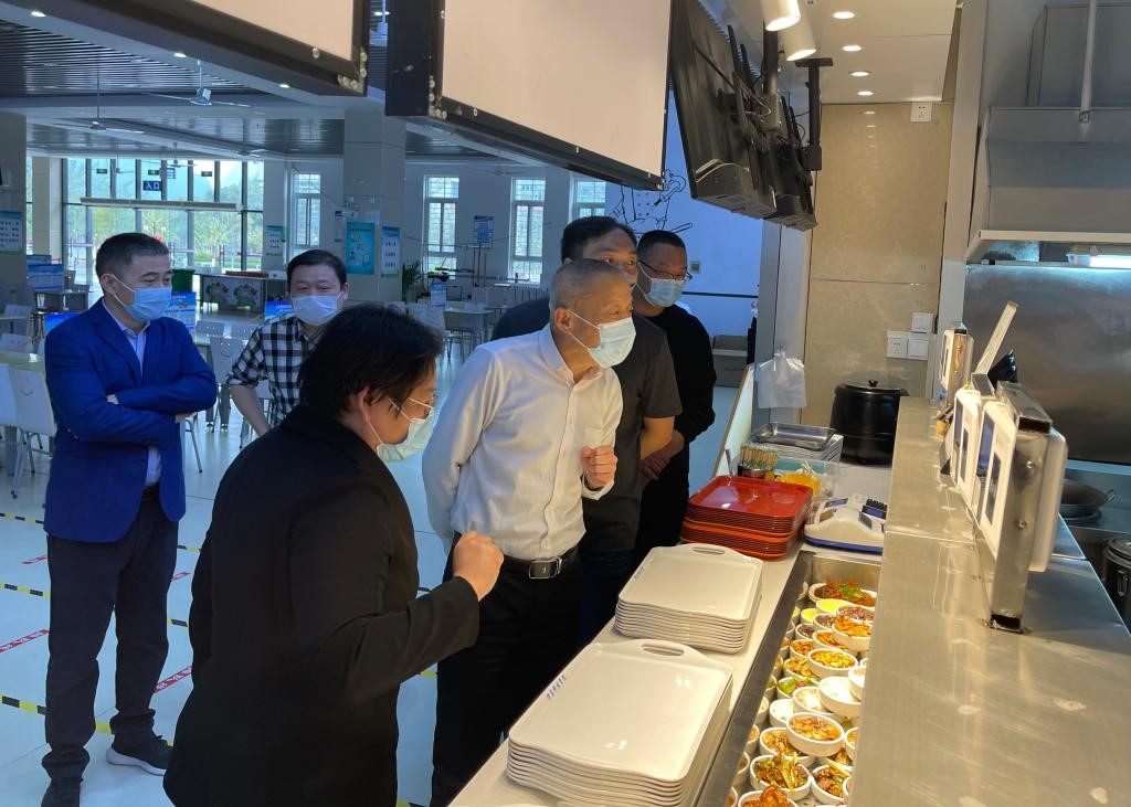 当天下午,新弘电集团领导和学校领导罗捷、梁丁丁、唐步洲、李飞分别带队前往校大门,看望慰问了坚守在一线的工作人员,了解当前返校学生的基本情况,叮嘱既要做好服务工作,也要提高个人防护意识。随后,领导们深入食堂、公寓等,了解食堂就餐环境、防控措施和学生入住情况。