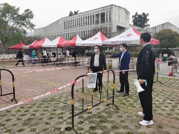 3月13日上午,学校党委书记甘勇、副书记唐步洲到校大门和校内核酸检测等现场,慰问坚守在一线服务的工作人员时强调,面对当前复杂多变的疫情防控形势,要在细节上做到精准防控、科学合理,确保此次学生返校工作有温度、有尺度、有力度。