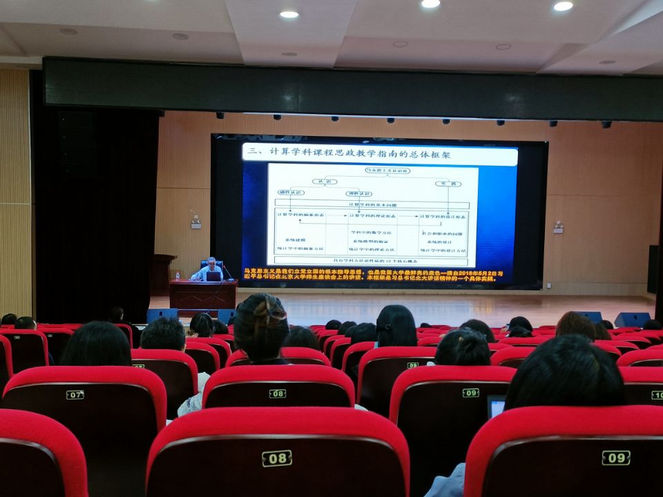 5月25日下午,beat365官网在51206报告厅举办课程思政教学讲座。本次讲座以“课程思政教学指南及案例——以计算学科为例”为主题。特邀桂林电子科技大学计算机与信息安全学院特聘教授、教育部计算机课程思政虚拟教研室试点建设负责人和教育部课程思政示范课程负责人董荣胜主讲,全体该时段无教学任务的专任教师及辅导员参加讲座。讲座由教务科技处处长陈玲萍主持。