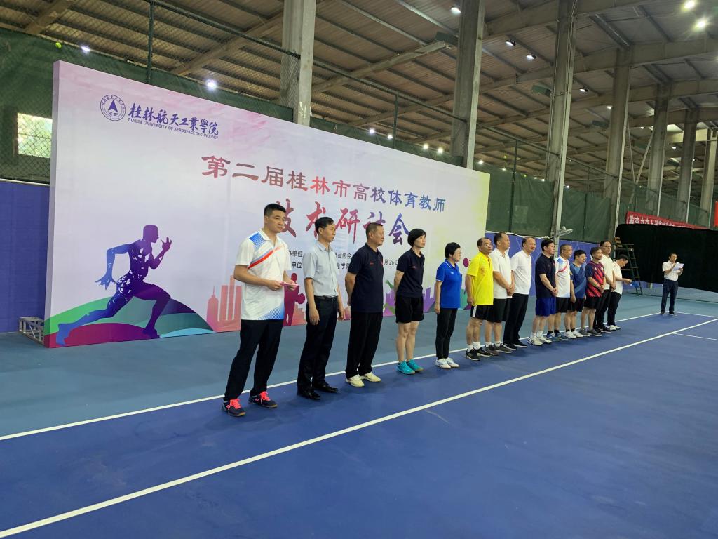 6月26日,由桂林市高等学校体育协会主办,桂林航天工业学院承办的第二届桂林市高校体育教师技术研讨会在桂林航天工业学院南校区球类馆顺利举行。桂林市各大高校相关校领导以及体育教师共计250余人参加此事赛会,beat365官网副校长陈智勇、校长助理李飞和体育与健康学院参赛教师出席了本届研讨会开幕式。