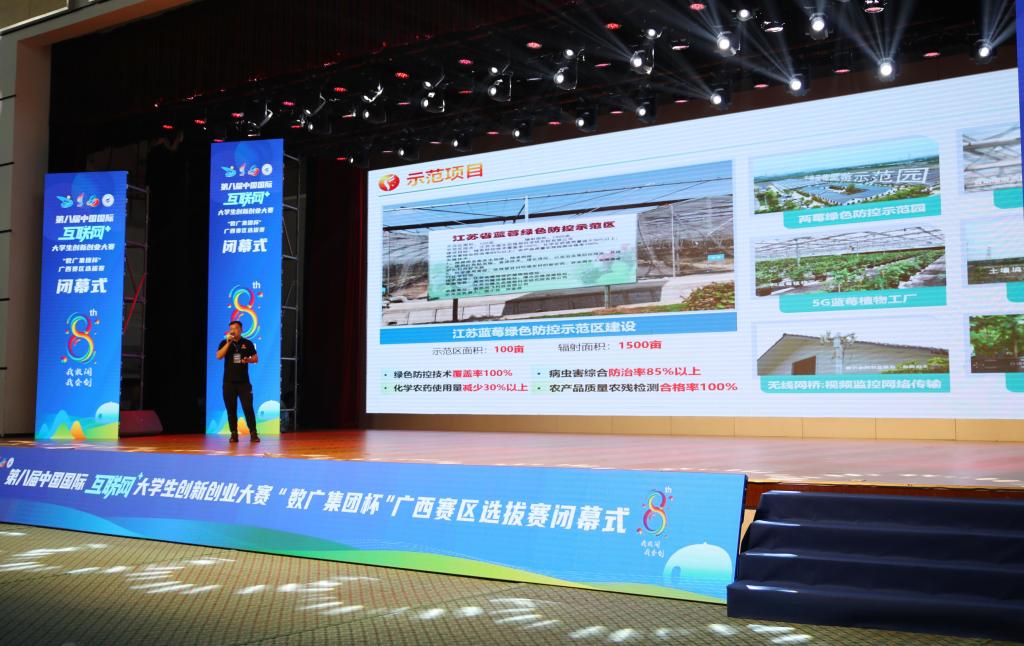 7月12日上午,在第八届中国国际“互联网+”大学生创新创业大赛广西区选拔赛闭幕式上,beat365官网“红旅赛道”项目《精耕细作、不负所托”——尚飞科技农业全托管服务先行者》作为全区“红旅赛道”代表现场上台展示,是全区上台路演分享的四所高校之一,受得广大师生的关注和点赞。