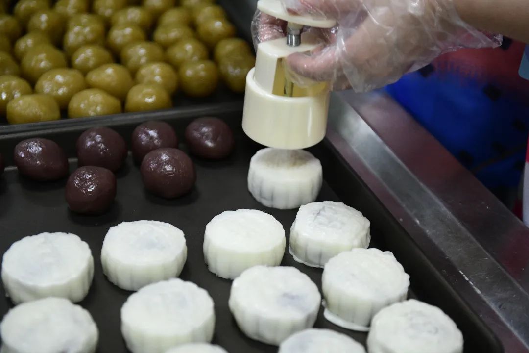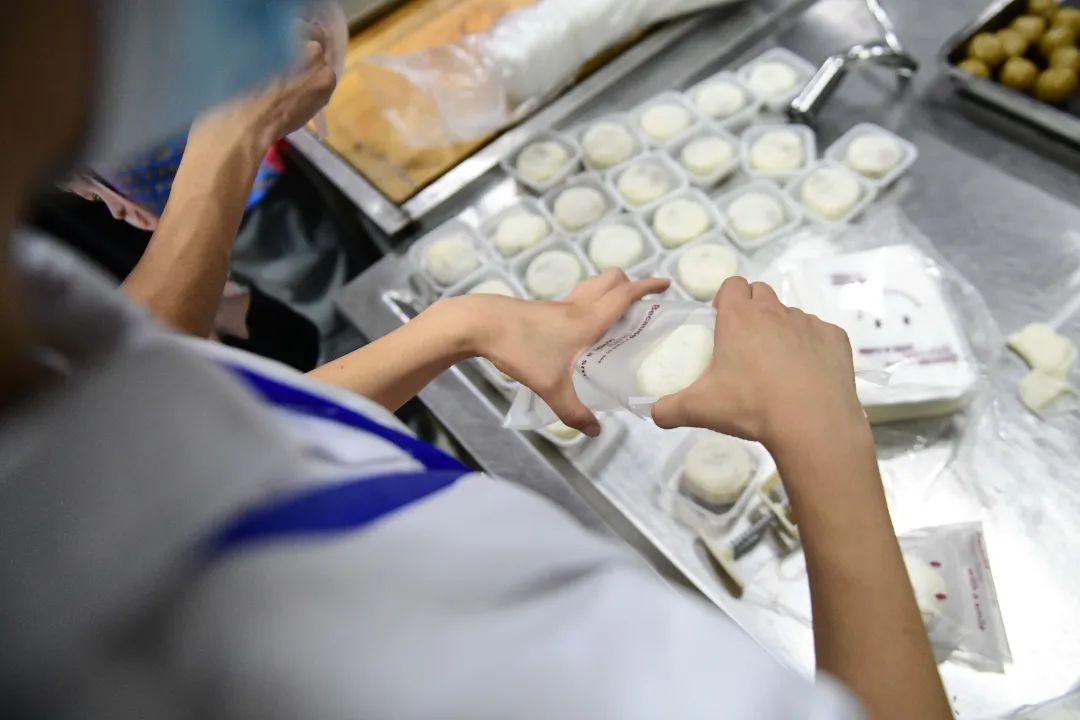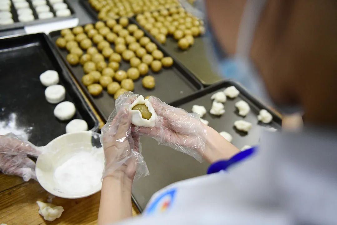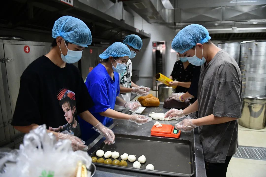 当然,让同学们最感兴趣的还是位于会场正中间的月饼制作台,食堂师傅走下灶台亲自指点,每个人都可以动手去尝试做一个独一无二的月饼,等待食堂阿姨将月饼蒸熟后,便可装进包装袋里带回去细细品味。