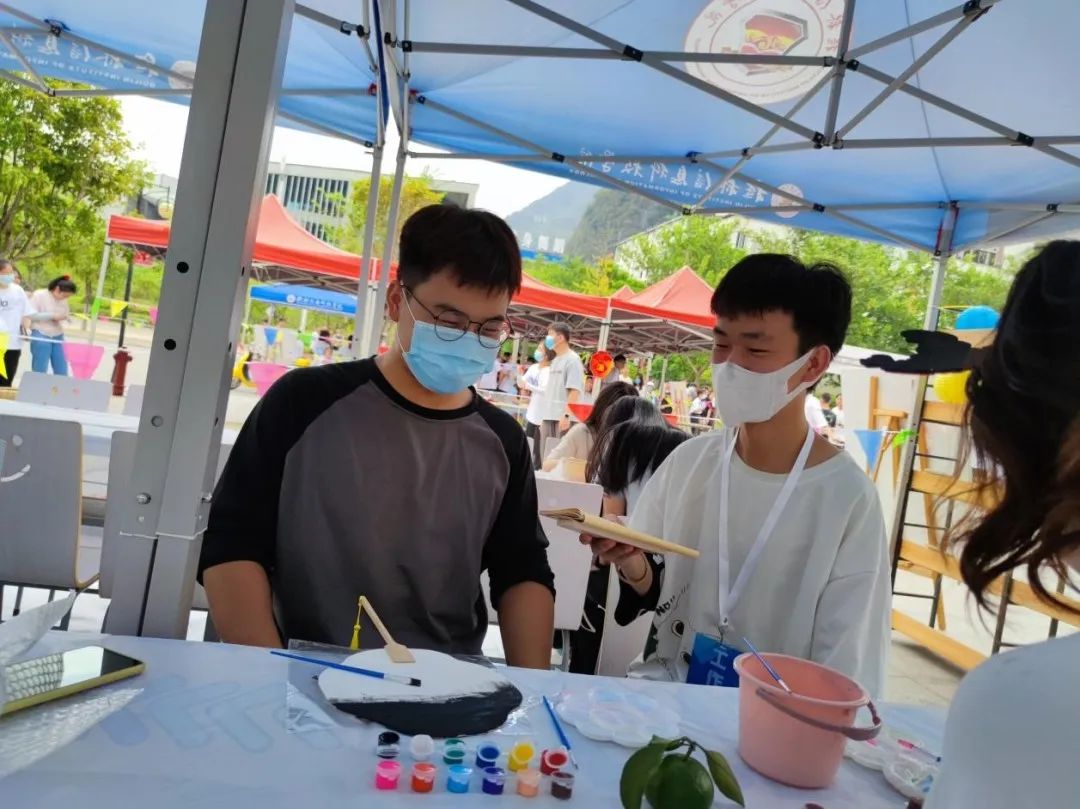 “裁为合欢扇,团团似明月”,团扇被赋予了团圆和合的寓意。学生通过活动获得空白扇面和颜料,加之手与眼的配合协作,充分发挥创造力,制作出了属于自己的扇面。符东升同学在采访中说道:“今年的活动带给我很不同的感受,首先中秋节和教师节双节相遇,学校庆祝方式更加隆重,活动也更加丰富多彩,所以早早便过来参加活动,感受节日的氛围。今年的大一新生刚参加完隆重的开学典礼就能感受到如此热烈欢快的活动,对他们来说是一次很特别的中秋节体验,这种幸福感和获得感是独一无二的,祝老师和同学们节日快乐。”