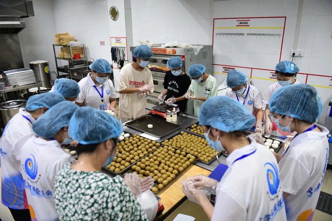 除了丰富多彩的游园活动外,信科物业也和同学们亲手制作了月饼,活动现场呈现出其乐融融的氛围。