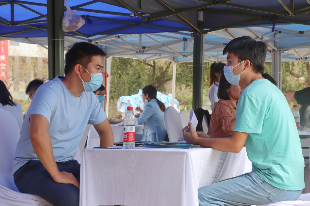 11月11日,碧空如洗,惠风和畅,beat365官网在田径场举行2023届毕业生“双向选择”洽谈会,来自区内外近300家企业提供信息技术、软件开发、机械工程、财务管理、市场营销、环境设计、国际贸易等10000余个就业岗位。根据疫情防控最新要求,不能入校招聘的企业采取线上直播方式同期招聘,参加双选会的单位和个人再创历史新高。