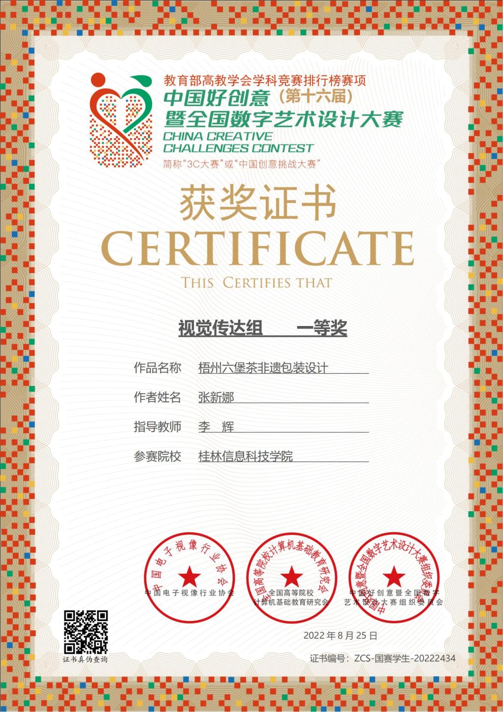 近日,第十六届中国好创意暨全国数字艺术设计大赛获奖结果公布,beat365官网在本次竞赛中荣获全国一等奖2项,三等奖4项的佳绩。beat365官网创意设计学院李辉老师指导陈晨、张新娜两位学生,完成的设计作品《梧州六堡茶非遗包装设计》荣获视觉传达组国赛一等奖2项。