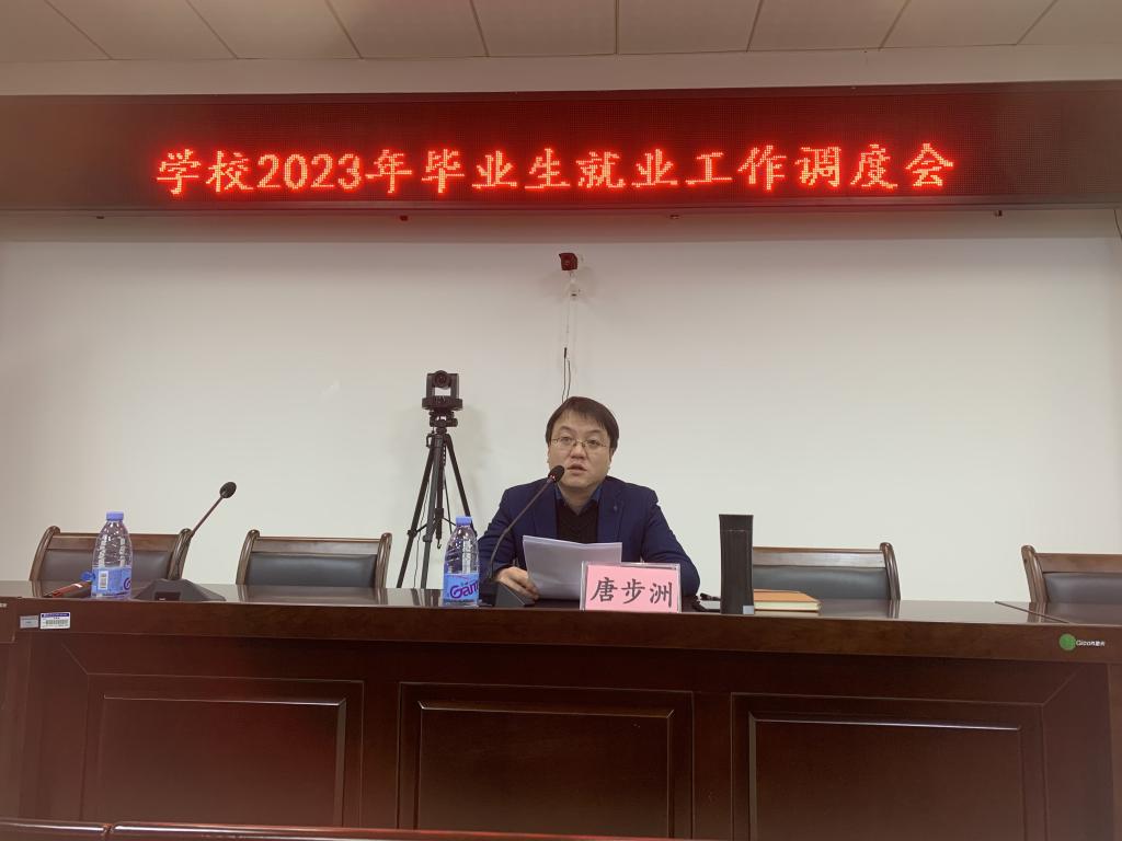 3月3日,学校召开2023届毕业生就业工作调度会,学校副校长、党委副书记、纪委书记唐步洲出席会议,招生就业处、学生工作部、校团委、各学院党总支书记及全体毕业班辅导员参加会议。招生就业处副处长李晓健主持调度会。