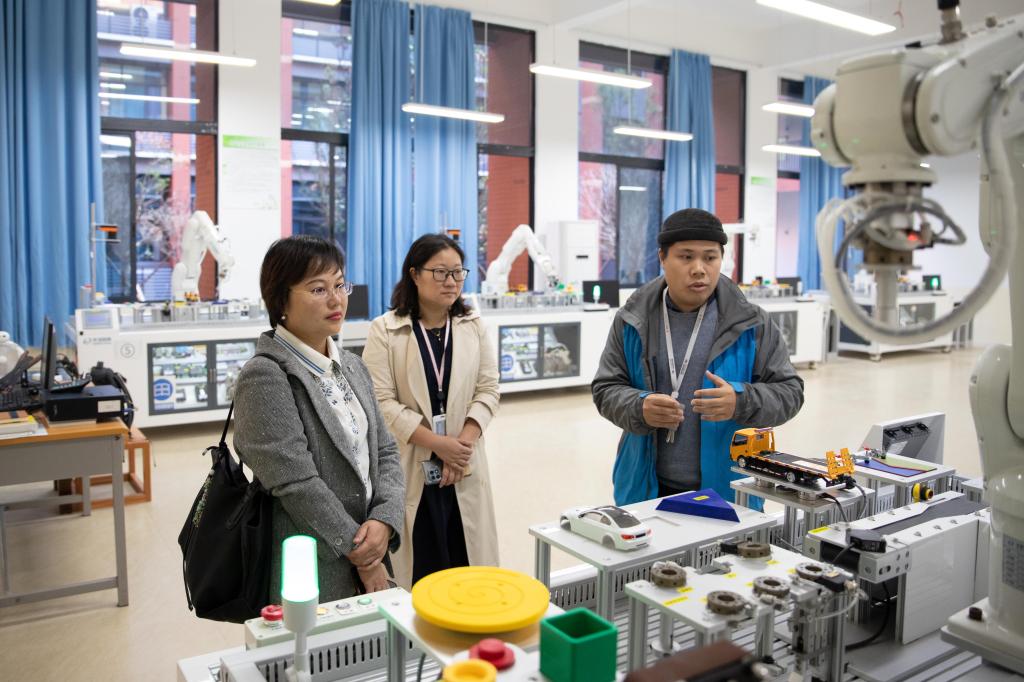 会前,桂林市科技局领导一行实地参观了学校创新创业学院、配电综合实验室、智能制造系统实训中心等实践场所。具体了解了学校在实践教学、创新创业教育以及科研成果转化等方面的情况。这些实地参观使市科技局领导们更加直观地了解了学校的教学环境和人才培养情况,为后续的交流提供了更充分的信息。