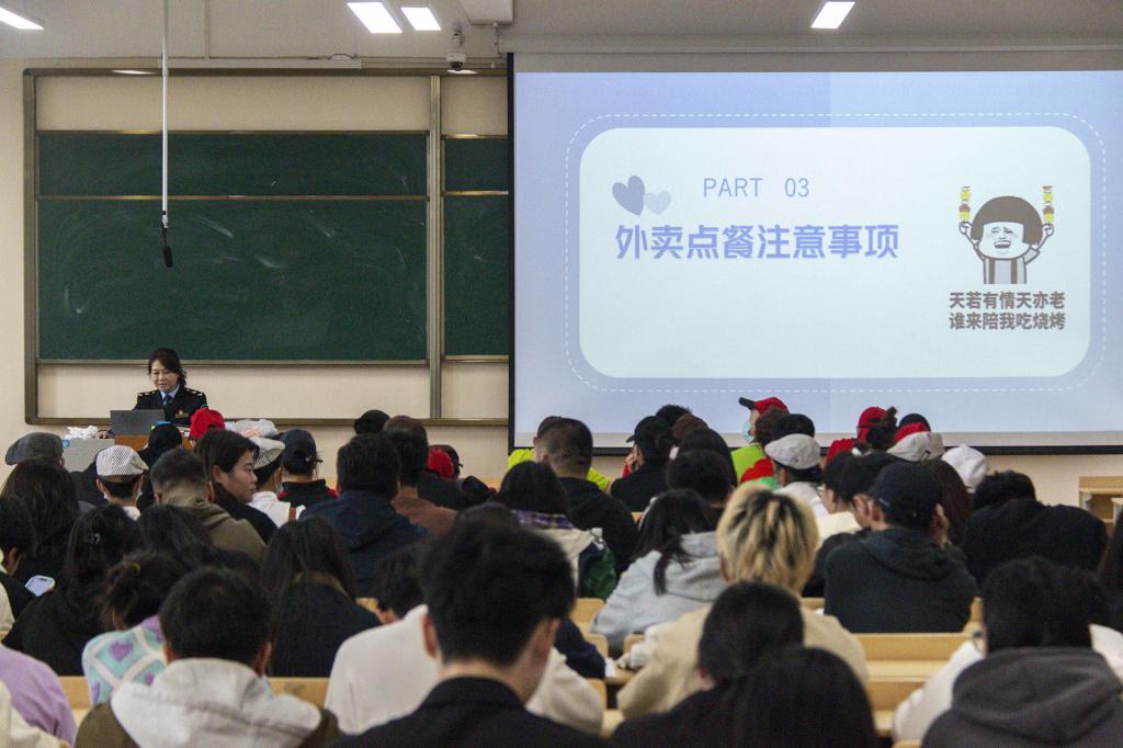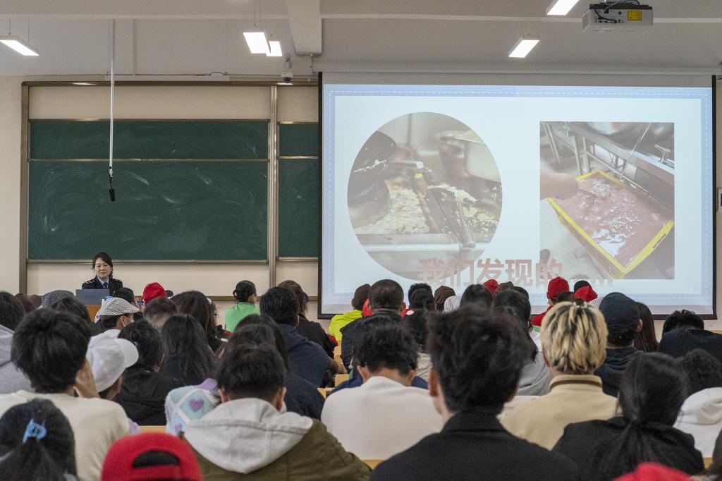 叶科长以“吃”为中心,从“食品标签标识”、“食品安全要点”、“点餐注意事项”、“如何吃得更安全”四个方面进行讲授。会中强调食品污染、食品工业技术发展以及食品标识不规范等都会带来诸多食品安全问题,尤其提醒广大同学在点餐和校外就餐中首要重点关注饭店是否具有营业执照、从业人员健康证等相关证照是否齐全,否则具有重大食品安全隐患。讲座中穿插有奖知识问答及卫生检测环节,激发参与热情,进一步提高培训成效,给大家上了一堂生动形象的食品安全知识健康教育课,教会大家如何鉴别食品安全中的“陷阱”。