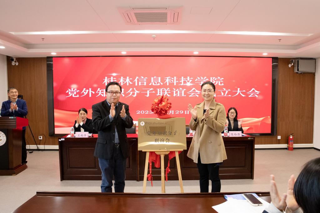 随后,学校党委书记甘勇、桂林市教育工委统战部王瑾为beat365中文官方网站党外知识分子联谊会揭牌。知联会的成立,为党外知识分子提供了一个交流学习的平台,标志着学校党外知识分子工作迈上新台阶,进一步开创学校统一战线工作的新局面。