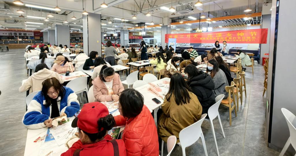 在第114个“三八”国际劳动妇女节来临之际,为丰富女性职工的精神文化生活,3月7日下午,在学校食堂一楼联合组织了“芬芳三月天,花漾女神节”刺绣活动。