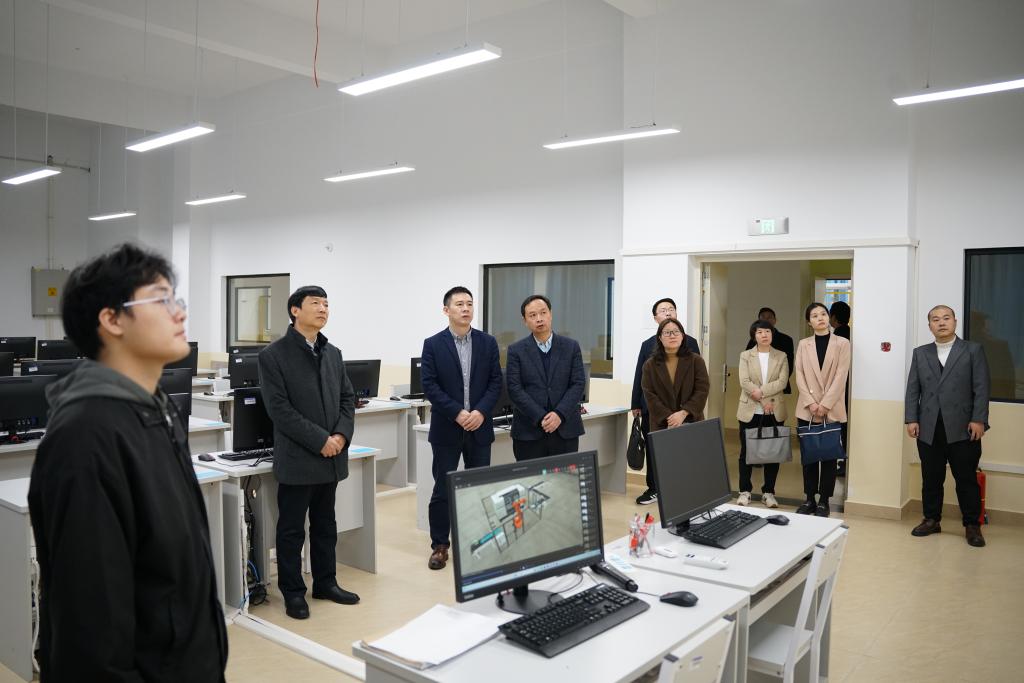 汇报会后,傅源方一行参观调研了学校创新创业学院、图书馆、配电综合实验室、智能制造系统实训中心等教学场所。
