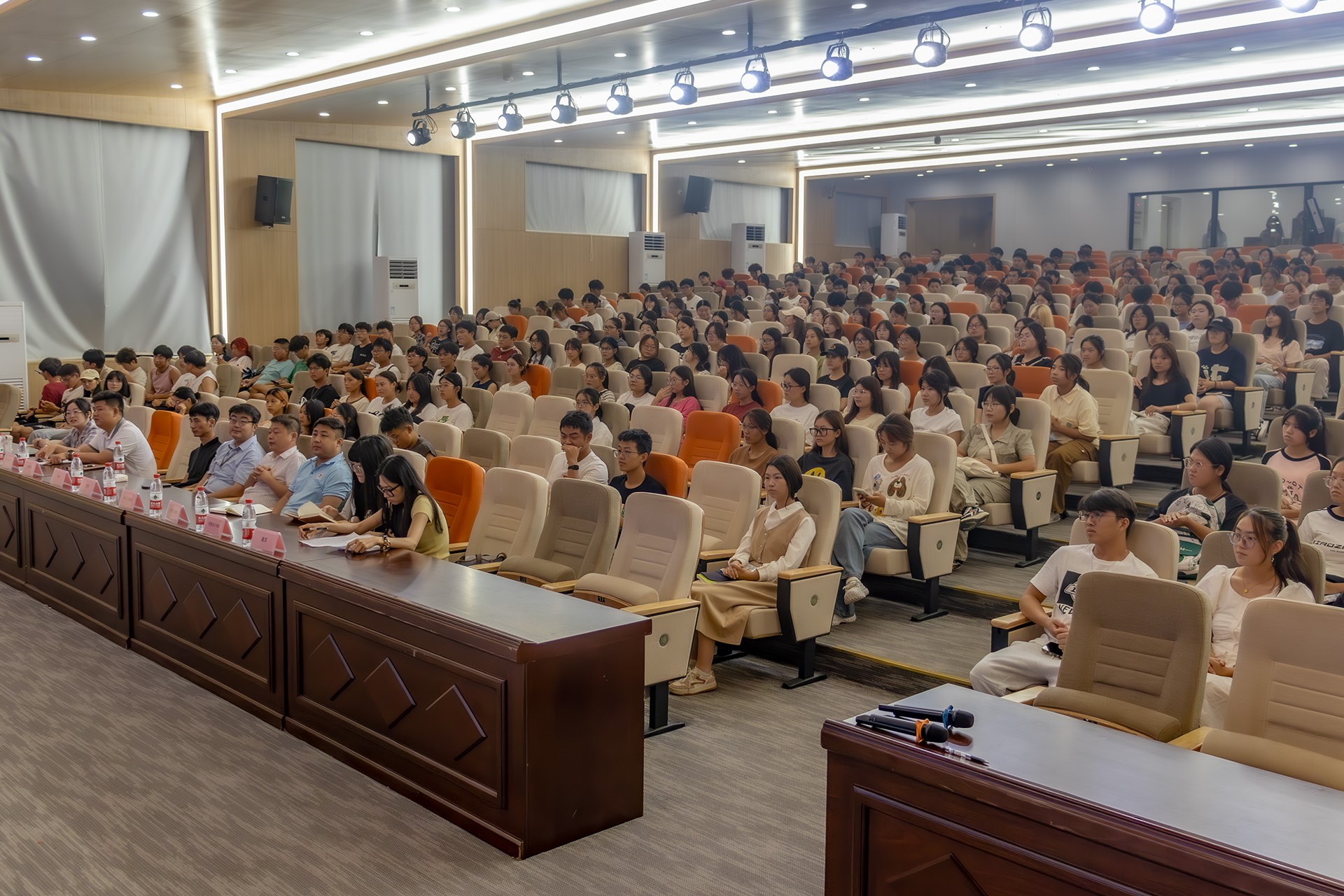 学校纪委书记、校长助理周璇出席会议,外贸与外语学院党总支书记李刚,各二级学院代表及相关负责老师,全校2024级新生代表以及领读员参会。