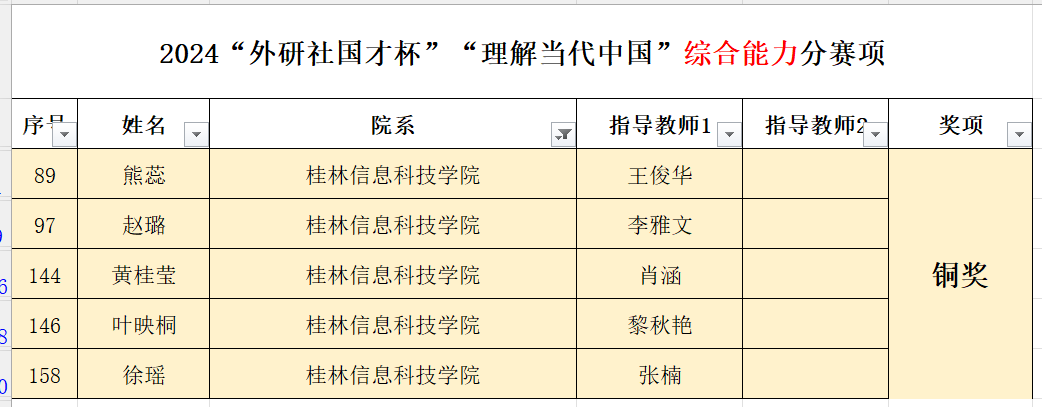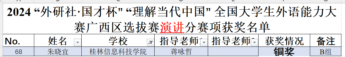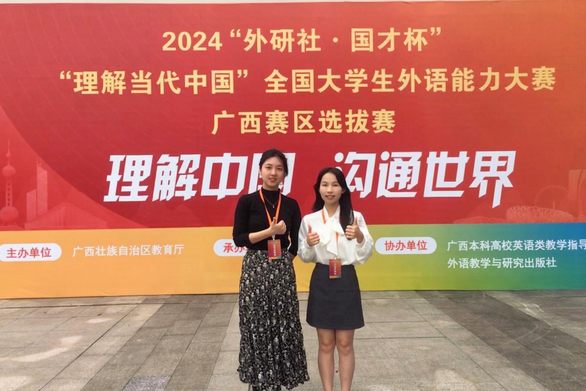 近日,2024年“外研社·国才杯”“理解当代中国”全国大学生外语能力大赛广西赛区选拔赛(以下简称区赛)圆满落幕。beat365官网外贸与外语学院学子在区赛中表现优异,共荣获铜奖10项,其中国际传播综合能力比赛—读写译综合能力分赛项5项,英语组短视频赛项3项,口译赛项1项,国际传播综合能力比赛—演讲分赛项1项。