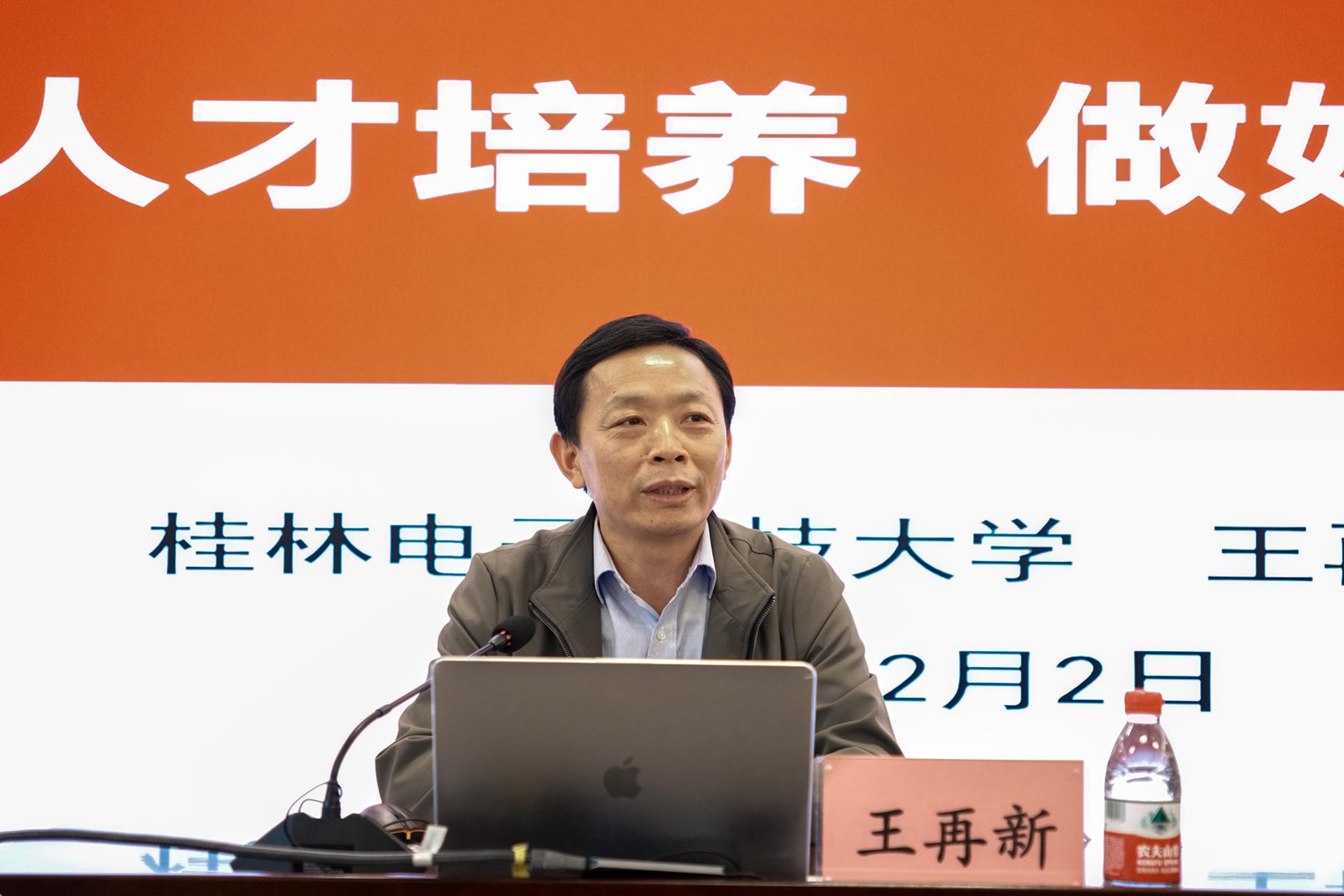 在12月2日-4日的专题授课中,桂林电子科技大学宣传部副部长、融媒体中心主任王再新为宣传员、网络思政工作骨干带来“如何服务教学 ,做好宣传服务”专题培训。王再新主任从目前宣传报道存在的主要问题、聚焦人才培养宣传的突出重点及聚焦人才培养宣传的守正创新等三个方面,结合自身在宣传工作中的典型案例进行了深入阐述。